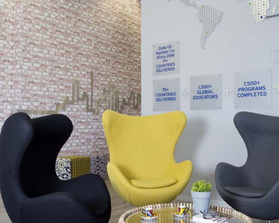 Duke CE offers leadership training to the corporate market. Their processes and solutions are highly creative, but their existing offices were drab and cramped. Having decided to move to a larger space, their brief was to create a collaborative, imaginative and flexible working environment. They appointed Pyramid for space planning, interior design and furniture supply. The project was managed by Duke CE’s global facilities head, who collaborated with Pyramid via VC, teleconference and email throughout the process to ensure that the design was of an international standard.